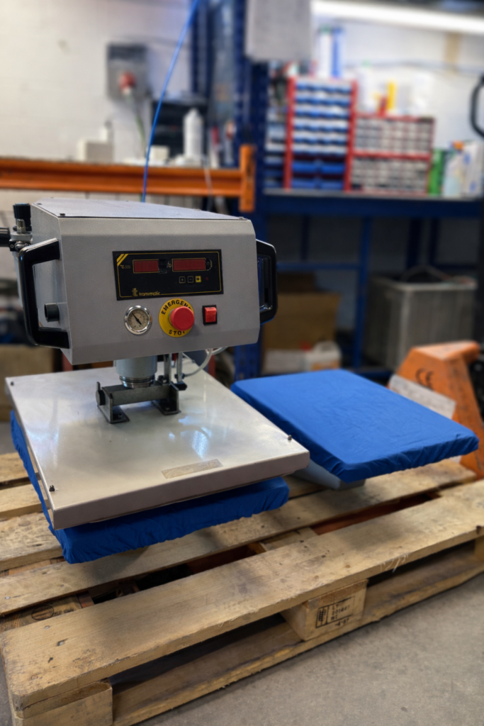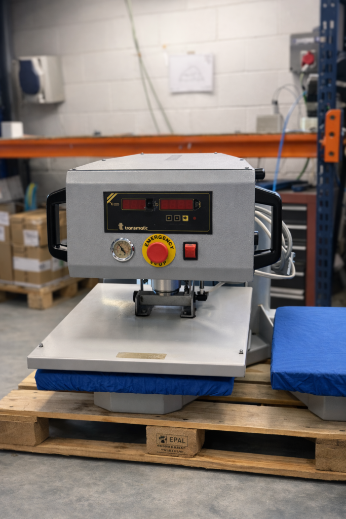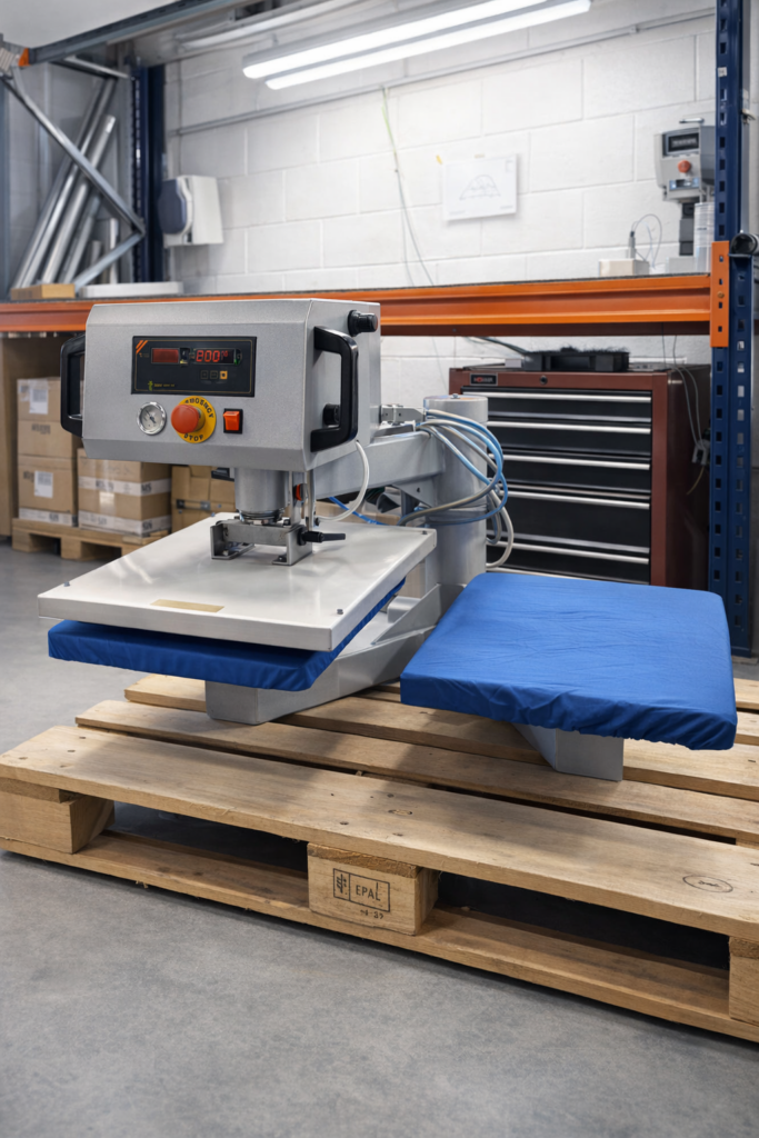 - Accionamiento neumático — presión uniforme en toda la superficie, ideal para DTF, vinilo, transfer y sublimación.
